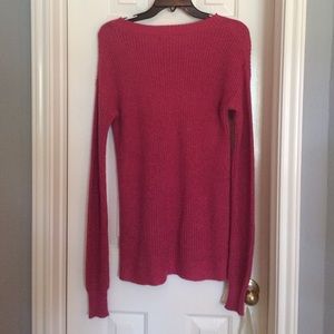 Dark pink knit sweater. The torso and sleeves are long. Minimally worn.