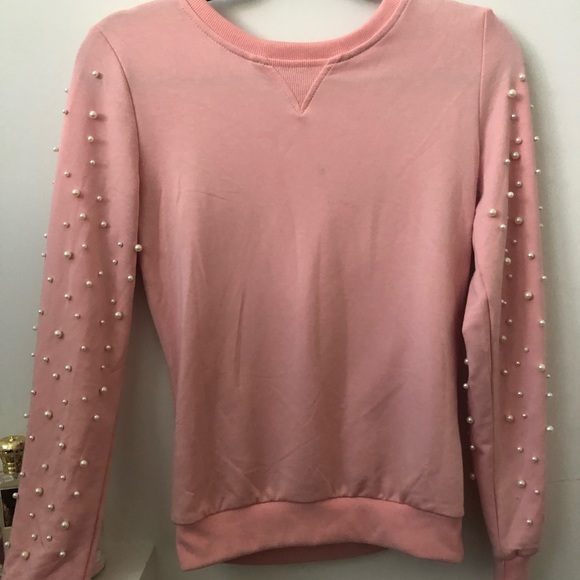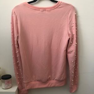 Pink sweater with pearls on the sleeves
