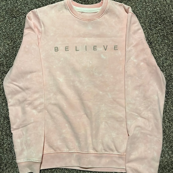 Pink sweater.