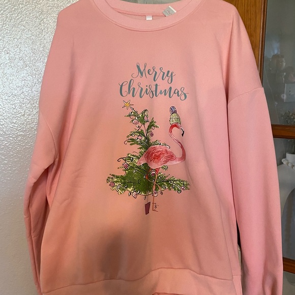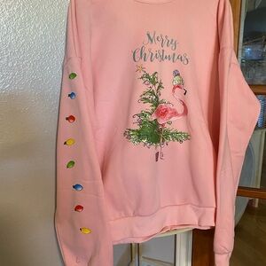 Really warm pink warm-up top flamingo picture MERRY CHRISTMAS