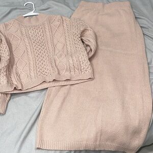 Soft pink sweater skirt set size small