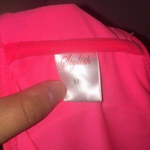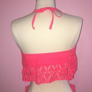 A halter style, pink swimsuit with a lacy detail •Size-M *I bought them together*