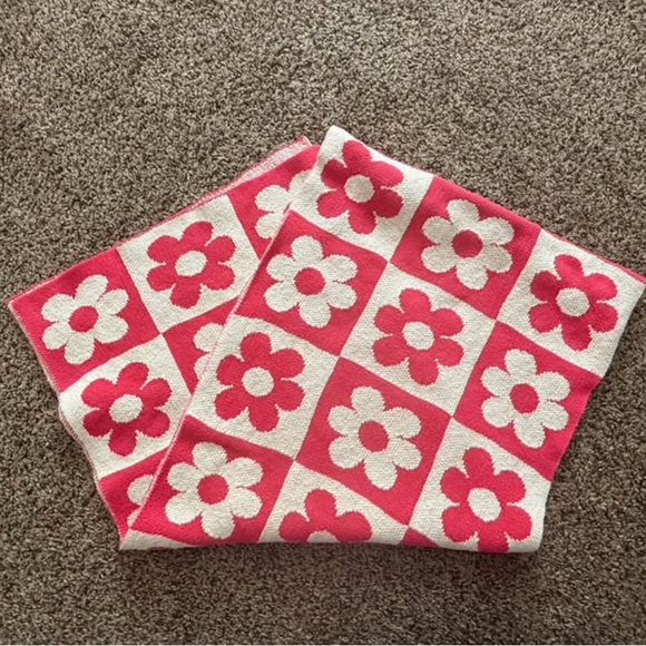 Retro floral flowers checkered hot pink sorority college dorm apartment table cloth decor accent kitchen dining