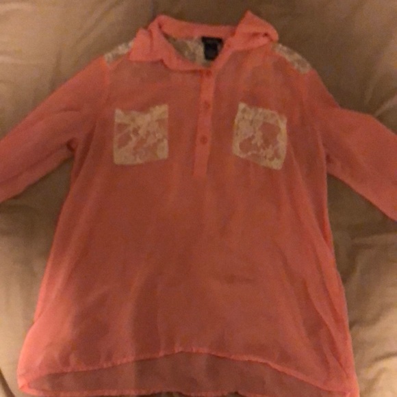 Sheer pick blouse with lace pockets and back