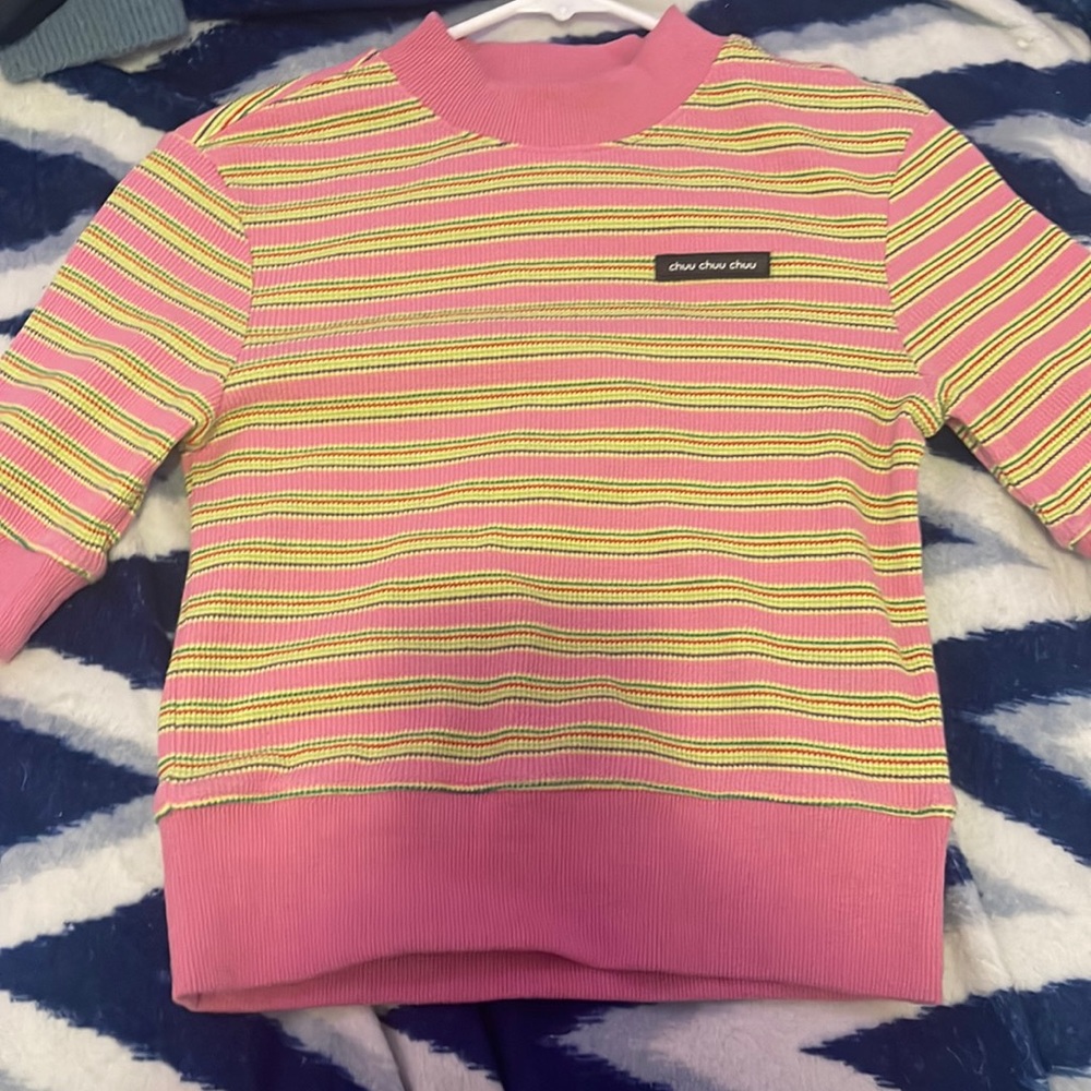 Pink top that I bought from Chuu (store in Korea) it is super cute. Size small.