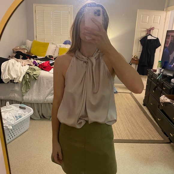 Pink rose colored top. Didn’t want to button the back but it buttons