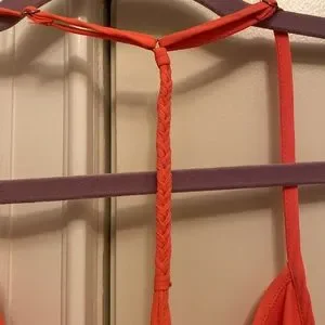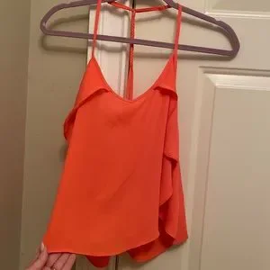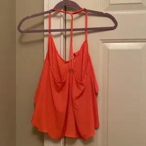 Pinky, flowy top with a braided back! Adjustable straps as well.