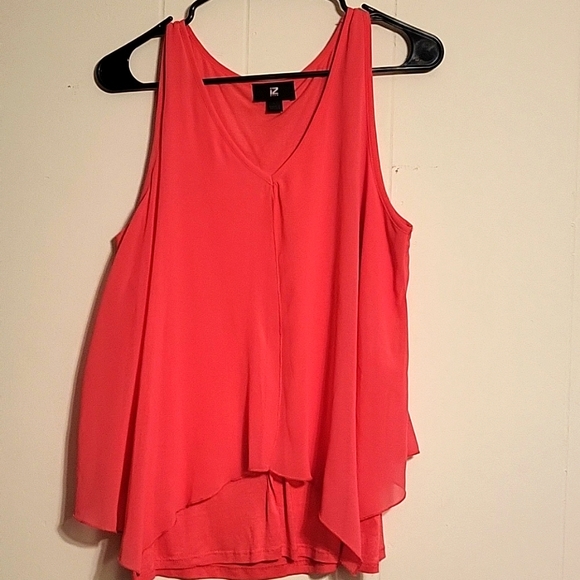 iZ Byer sheer pink top with built-in tank top underneath. Has open slit in front and back