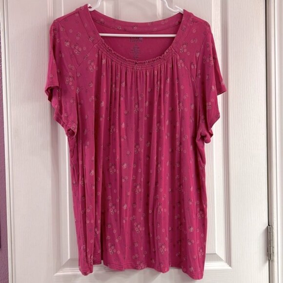 Light weight pink top with small pattern. Great top for hot summer days. Rarely worn.