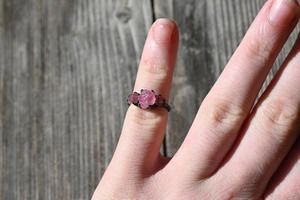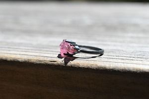 Pink tourmaline ring, size 4, black silver ring, raw stone ring, …