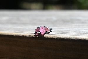 Pink Tourmaline ring in black sterling silver, size 4, can be resized.