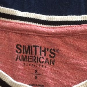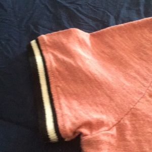 Cute pink top with black and white strips on sleeve
