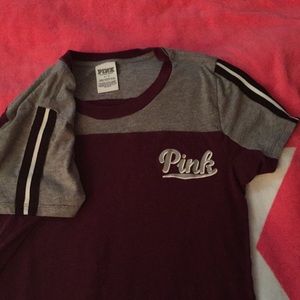 Pink t-shirts sold together. Both are in good used condition. The first is an oversized shirt and the second is a more fitted. They are both size small.
