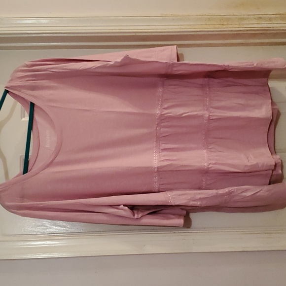 Pink tunic made by Roman's. There's two layers of embroidery at each layer including 3/4 length sleeves. Very feminine and perfect piece for transitioning from summer to fall. Size 3x but runs a little big.