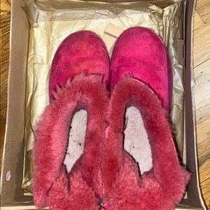 Basically new pink uggs. So cute and the bow is everything. Still have box. Worn less than 5 times. Stored in a smoke and pet free home. Open to reasonable offers.