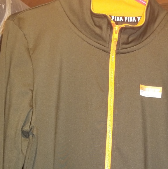 EUC, worn once, green & orange with silver stripe down the back, half zip.