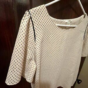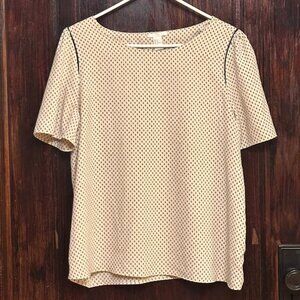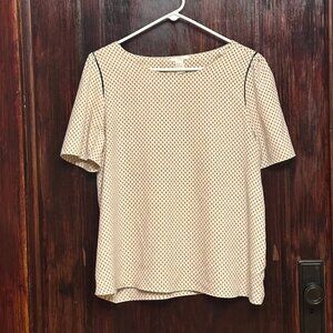 Pink w/ Tiny Black Pattern Blouse, Professional/Formal, Flowy, Short-Sleeves 14