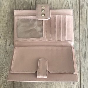 Cute pink wallet with metal stud clasp detail. Holds plenty of cards and cash. Was given to me at an event, never used myself, good condition.