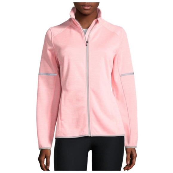 New xersion lightweight 100% polyester track jacket with silver reflective accents. Side pockets. Really comfortable.