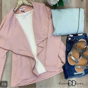 This jacket is a great transitioning piece for the Spring. The knit fabric maximizes comfort and mobility, allowing you to move throughout the day. There's a wide collar and full zipper making it easy to put on and take off.