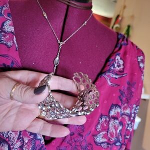 Pink wrap dress bundle with necklace and cuff.