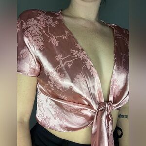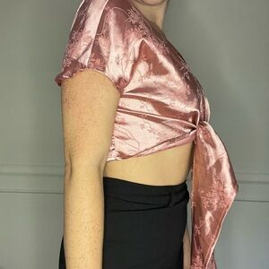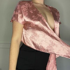 Satin Pink wrap top S/4 97% polyester, 3% spandex