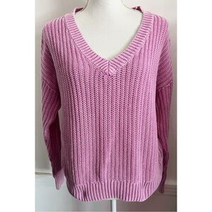Pink x Forenza • V-Neck Women's Sweater Pink Cable Knit
