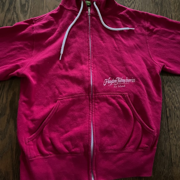 Super cute pink zip up! It’s a size small but Is oversized so definitely could fit a M.