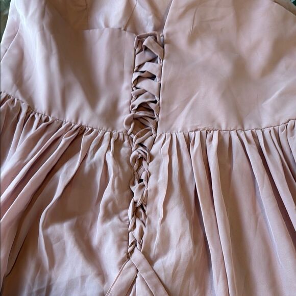 Pink Asymmetrical Off One Shoulder Gown Sleeveless Silky Adjustable Tie Back