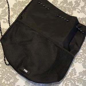 VS PINK🌸 Backpack NWT black super cute with mesh pocket and drawstring closure. Size large