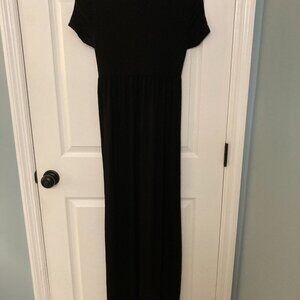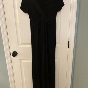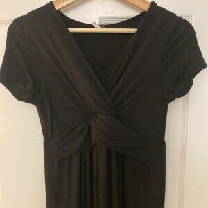 From PinkBlush: "A solid draped maternity maxi dress featuring a v-neckline, short sleeves, and cinching under the bust."