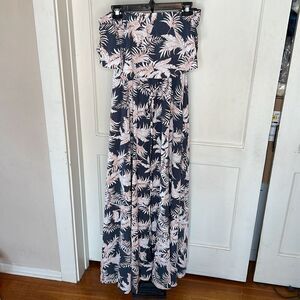 PinkBlush Charcoal Leaf Print Strapless Front Tie Maternity Maxi Dress Nwt Mediu