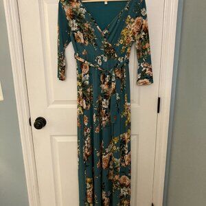 PinkBlush Green Rose Sash Tie Wrap Top Maternity Maxi Dress