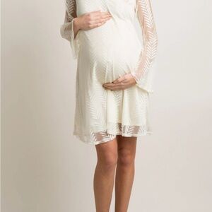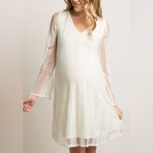 PinkBlush Ivory Chevron Mesh Overlay Maternity Dress /size M