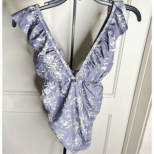 PinkBlush Lavender Floral Ruffle Maternity One-Piece Swimsuit Size Small Nwot