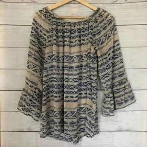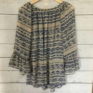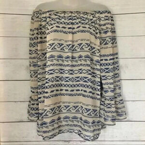 PinkBlush Maternity Semi-Sheer Cold Shoulder Boho Preppy Printed Long Sleeve S