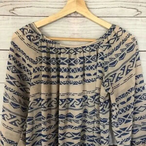 PinkBlush Maternity Semi-Sheer Cold Shoulder Boho Preppy Aztec Printed Long Sleeve