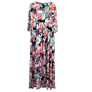 PinkBlush Maxi Dress Women 3XL Maternity Pink Navy Floral Abstract Baby Shower