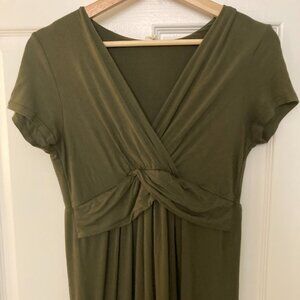 PinkBlush Olive Green Draped Maternity and Nursing Maxi Dress