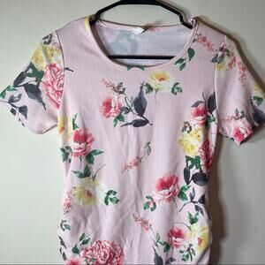 PinkBlush Pink Floral Fitted Ruched Short Sleeve Maternity Dress Size S