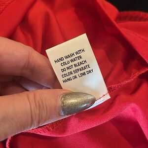 Hand Wash Cold, No Bleach, Color Separate, Hang Dry, Line