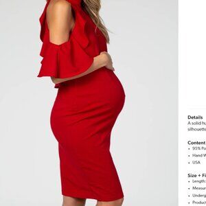 PinkBlush Red Mock Neck Ruffle Trim Fitted Maternity Dress