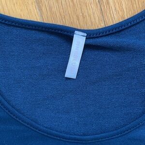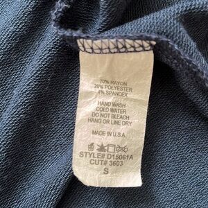 Darting on front of dress for shape. Long slit on front side of skirt for ease of movement. U shaped neckline. Very stretchy and comfortable! Mid to lightweight; fabric is opaque but not too thick and works for cooler, mild and warm weather. Made in USA. Hemline in front is longer than in the back for a smooth, even hemline for pregnancy. In excellent preloved condition; only worn a few times.