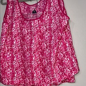 This vibrant pink tank top features a lively white splatter pattern, offering a fun and energetic look. The sleeveless design and boxy fit ensure a comfortable and breezy wear, perfect for warm weather. Its high, rounded neckline adds a touch of elegance to this casual piece.
