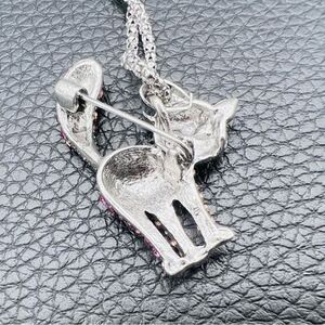 Pink Crystal Flower Cat Kitten Pendant Chain Necklace/Brooch NWOT