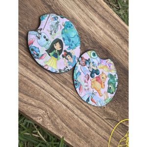 Pink Disney Characters Car Coasters 2 Pack