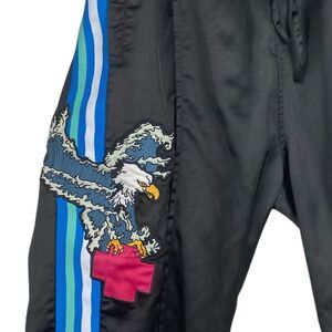 Pink Dolphin Take Flight Black Satin Striped Embroidered Eagle Track Pants Large