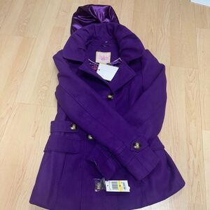 Pink Envelope Purple Women's Hooded Belted Peacoat Jacket CoatSize Medium