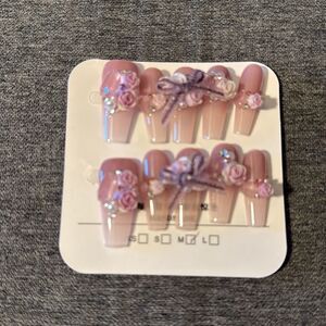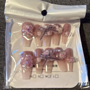 New, Adorable pink nail art set featuring floral designs and bows. Perfect for adding a touch of fun and style.