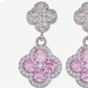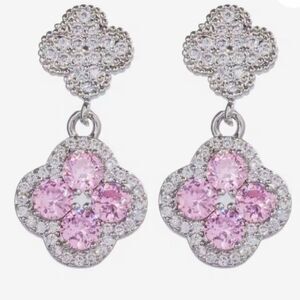 Elegant & Classy Clover Pink Micro Pave Diamond Earrings - Simulated Diamonds